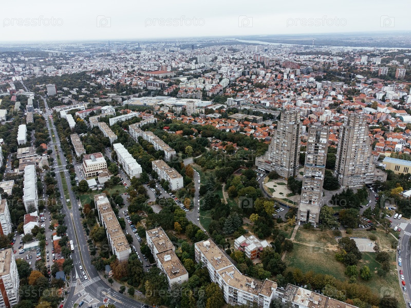Вид с воздуха жилых башен Rudo и городского пейзажа в Белграде, Сербия. g