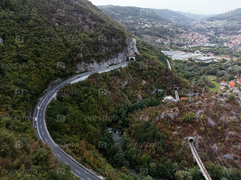 Средневековая крепость на вершине скалы с видом на реку и город с красными крышами в Узице, Сербия, с извилистой дорогой