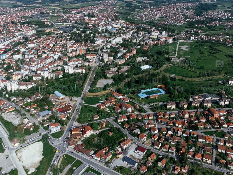Лазаревац, район Колубара в Сербии. вид города с беспилотника в солнечный день