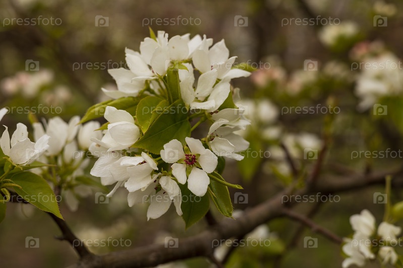Цветение яблони, белый яблоневый цвет в саду, парке в солнечный весенний день