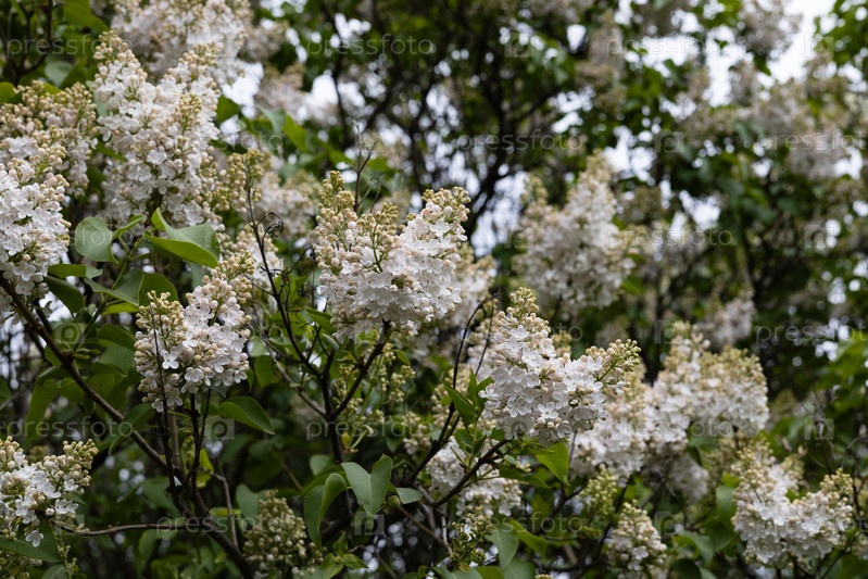 Куст цветущей сирени в городском парке в весенний день