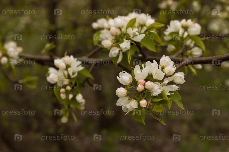 Цветение яблони, белый яблоневый цвет в саду, парке в солнечный весенний день