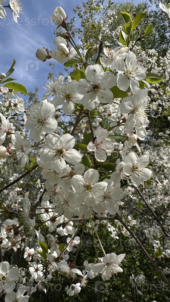 Цветение вишни весной, вишневый сад, белые цветы