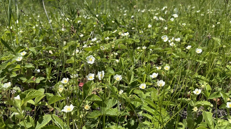 Цветущая летом на лугу клубника дикая луговая полевая лесная