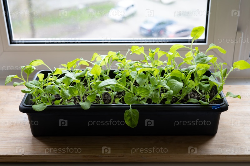 Рассада в горшке на подоконнике в доме, домашнее выращивание урожая