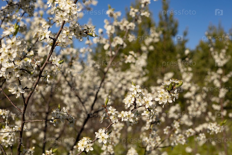 Цветение вишни весной, вишневый сад, белые цветы