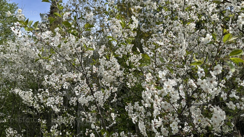 Цветение вишни весной, вишневый сад, белые цветы