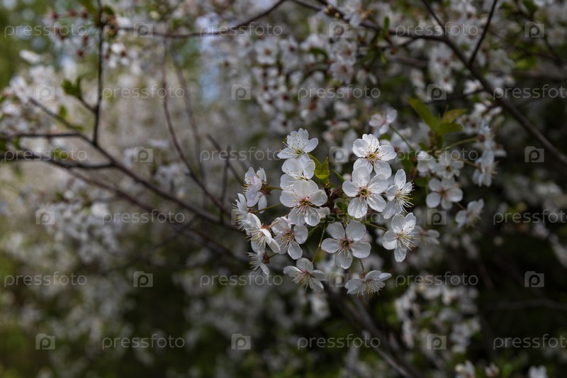 Цветение вишни весной, вишневый сад, белые цветы