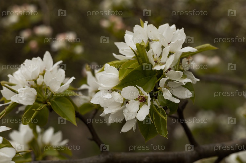 Белые цветы цветущей яблони, крупный план