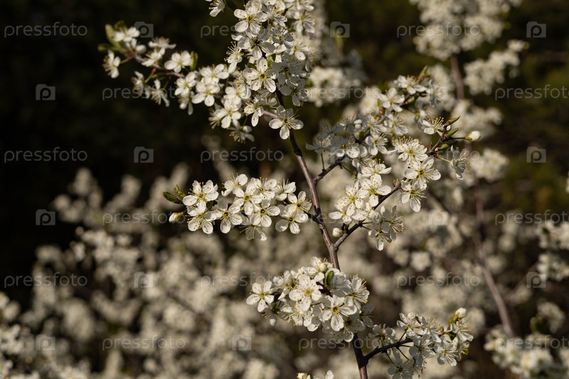Цветение вишни весной, вишневый сад, белые цветы