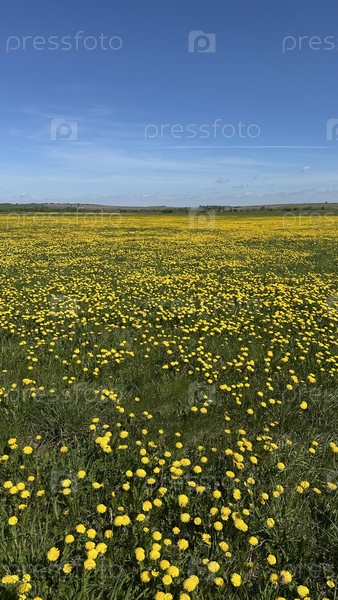 Желтые цветы одуванчика цветущие в поле в солнечный весенний день