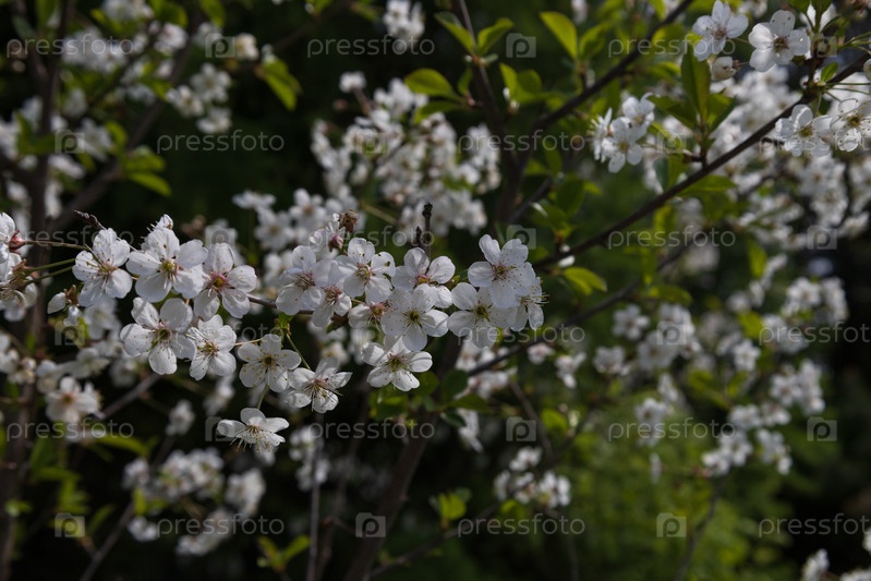 Цветение вишни весной, вишневый сад, белые цветы
