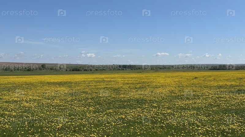 Желтые цветы одуванчика на весеннем лугу в солнечный день