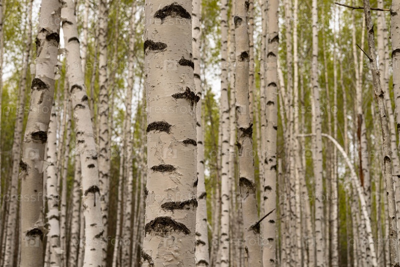 Березовая роща, белые стволы берез крупный план, ранняя весна