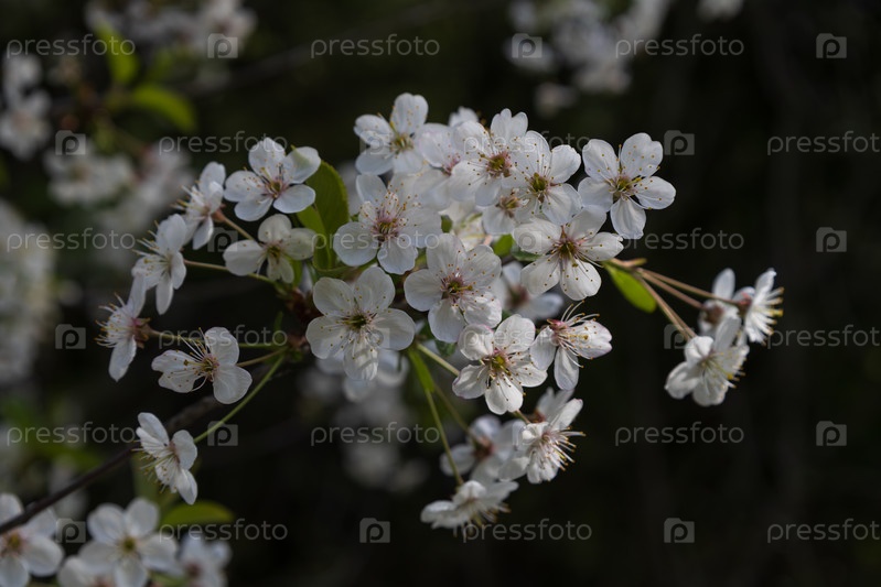 Цветение вишни весной, вишневый сад, белые цветы