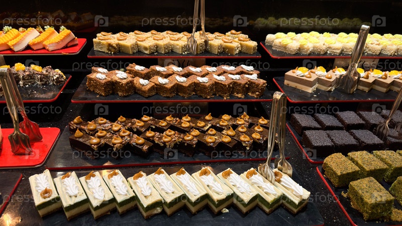 Пирожные и торты, кондитерские изделия в ресторане отеле в Турции