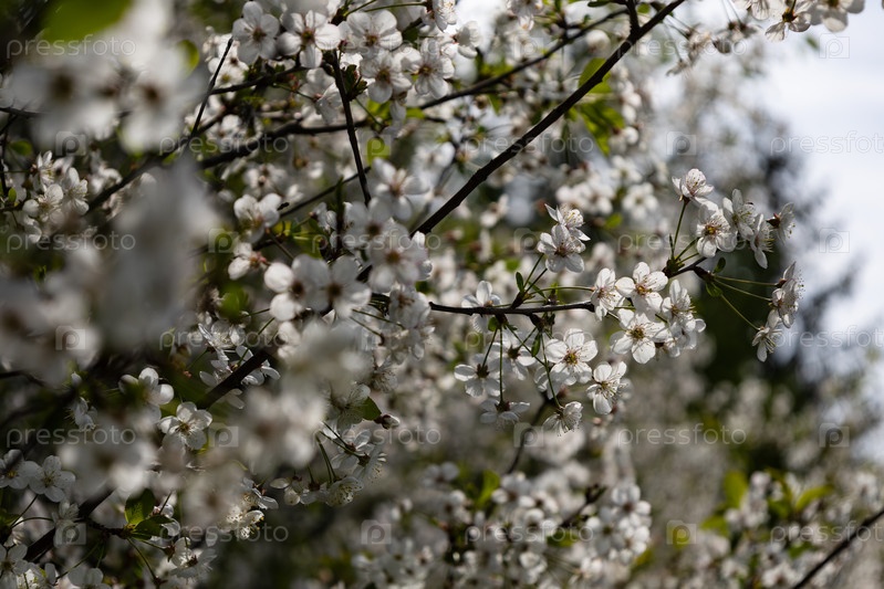Цветение вишни весной, вишневый сад, белые цветы