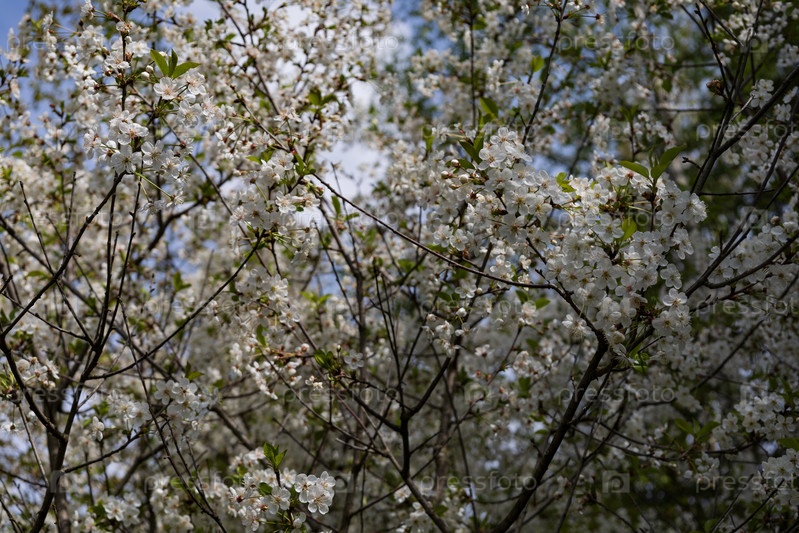 Цветение вишни весной, вишневый сад, белые цветы