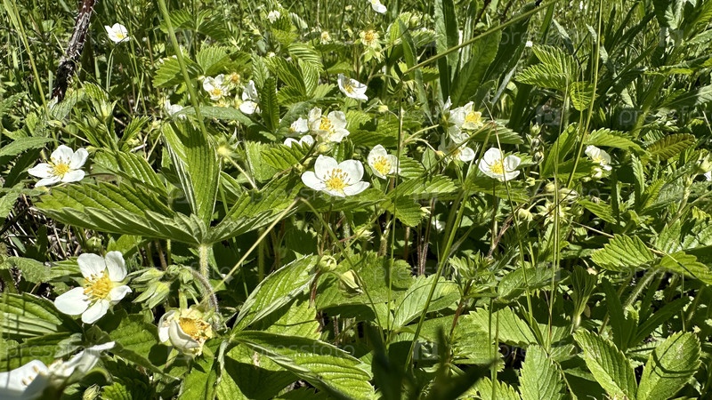 Цветущая летом на лугу клубника дикая луговая полевая лесная