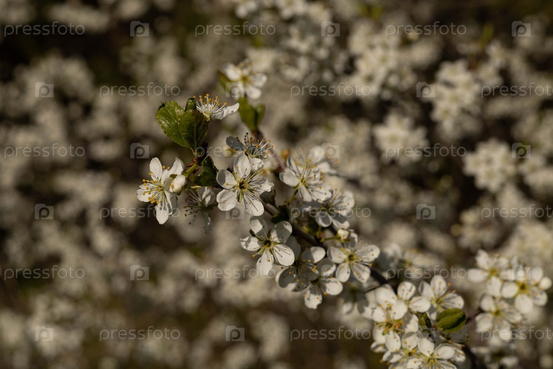 Цветение вишни весной, вишневый сад, белые цветы