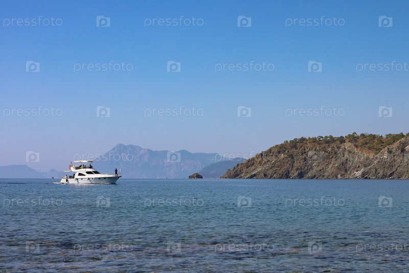 Прогулочная туристическая яхта движется в Средиземном море, Турция