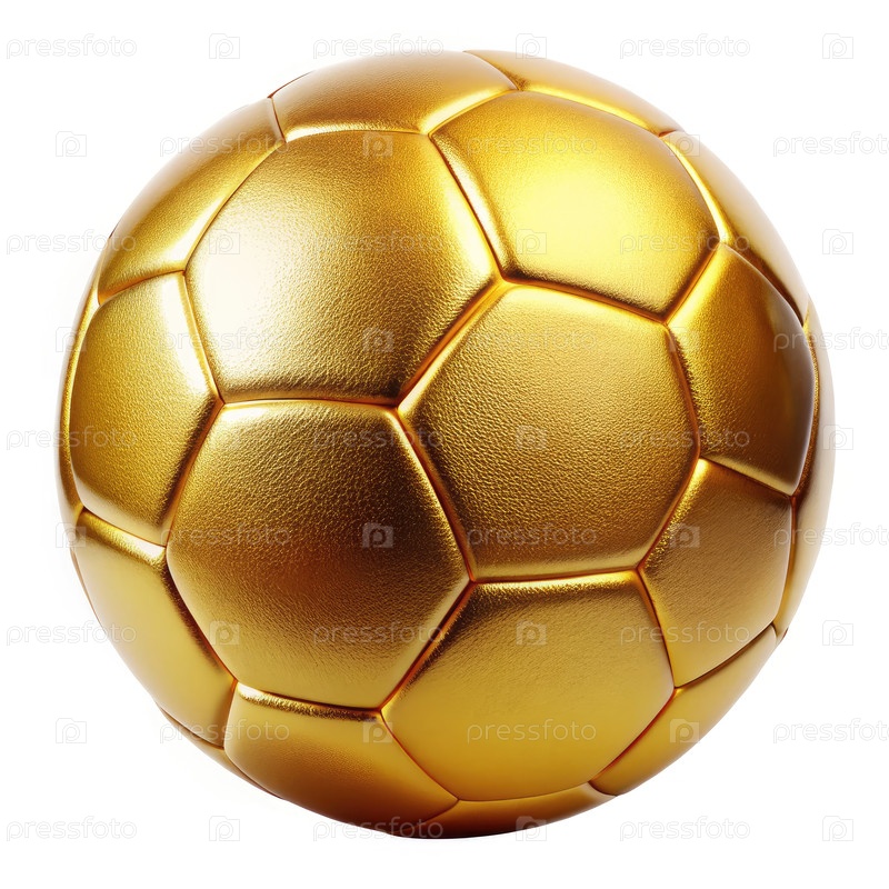 Золотой футбол изолирован на белом фоне со стандартными дизайнерскими особенностями