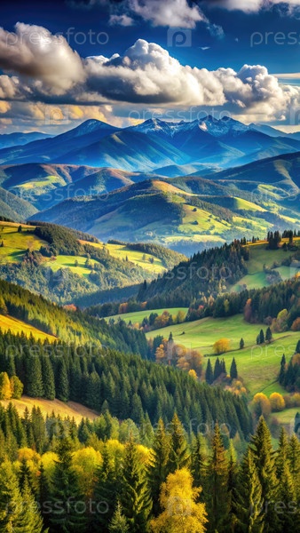 Потрясающий вид на Карпаты во время осенних ярких листьев