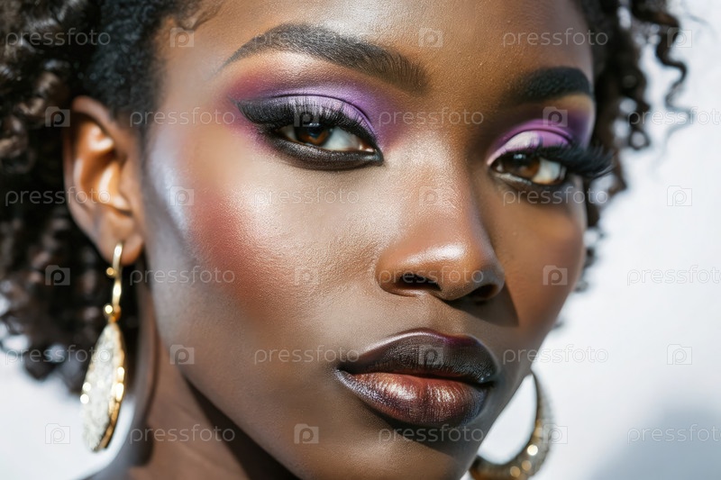 Близкий план редакционного макияжа, демонстрирующего яркие цвета на темной коже