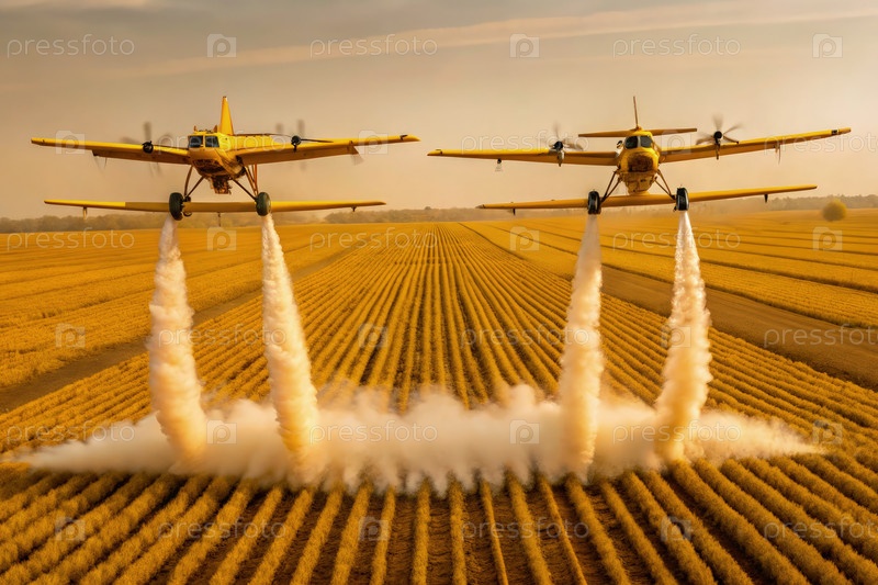 Поливные самолеты работают над засушливыми полями во время сухого сезона