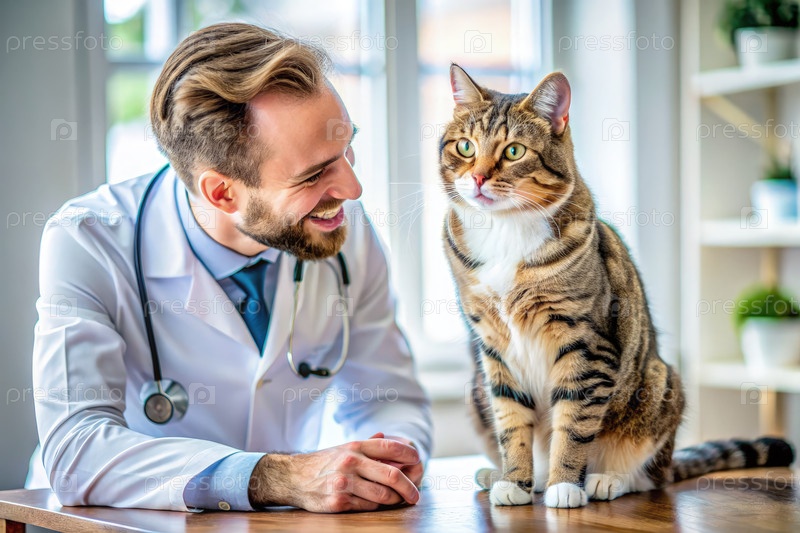 Кошка, осматриваемая ветеринарным врачом в клинике во время рутинного обследования