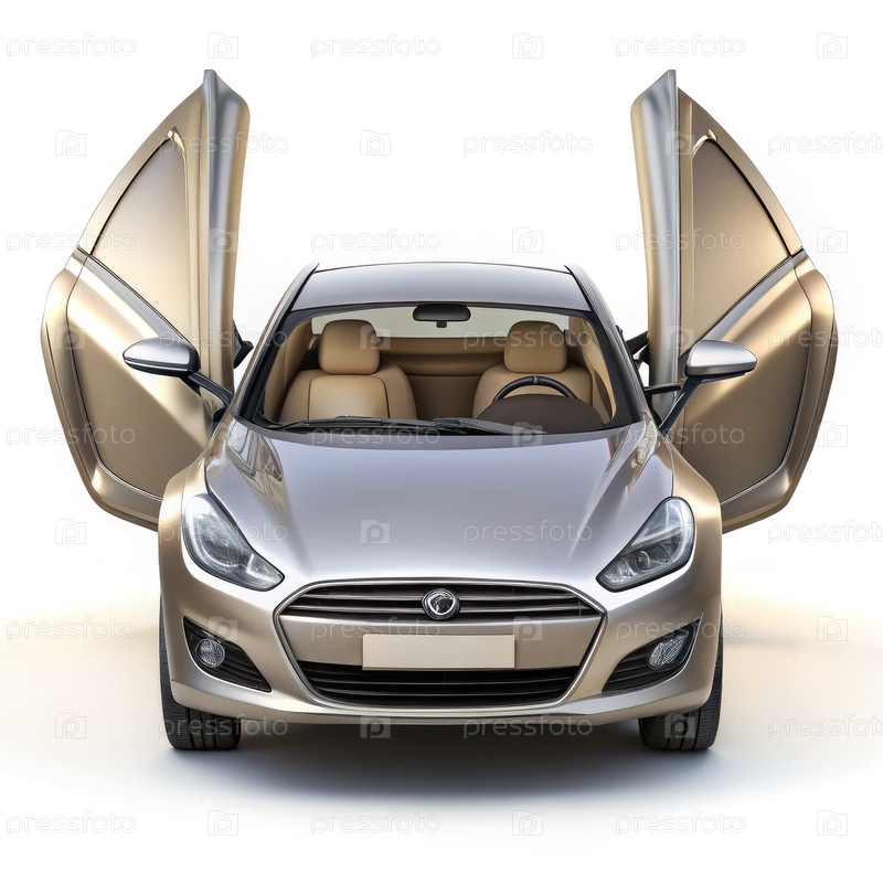 Утонченный дизайн автомобиля с открытыми дверями на чистом белом фоне