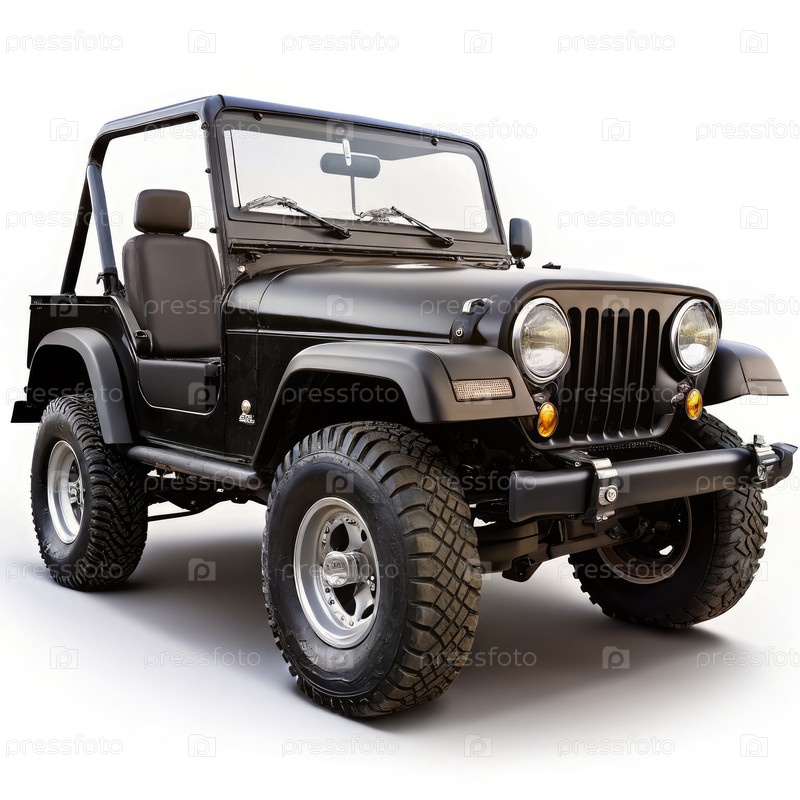 Черный открытый джип на белом фоне, демонстрирующий его прочный дизайн