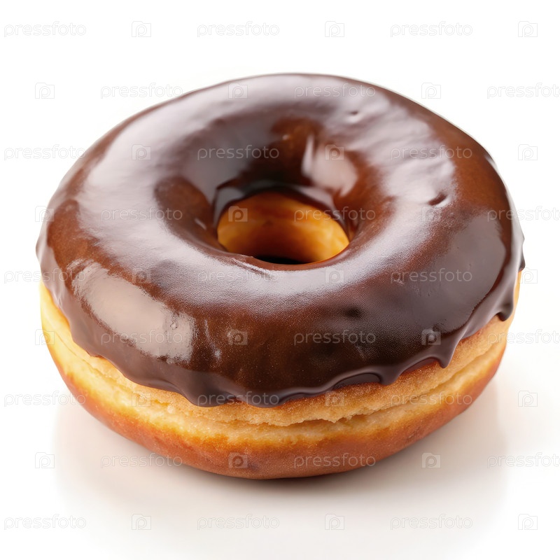 Вкусный пончик, покрытый шоколадом на белом фоне в стандартной шкале