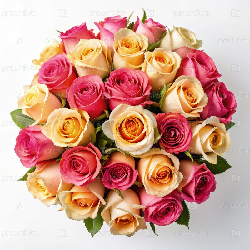 Потрясающий букет роз демонстрирует разнообразные розовые и желтые цветы, красиво расположенные