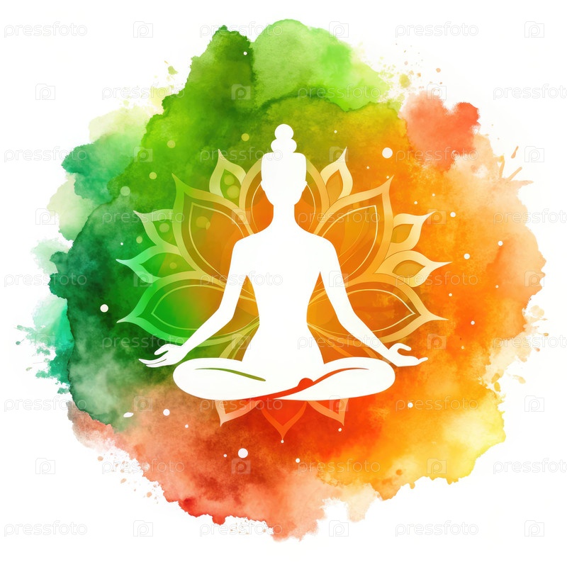 Логотип медитации йоги с зелеными и оранжевыми тонами со спокойным дизайном