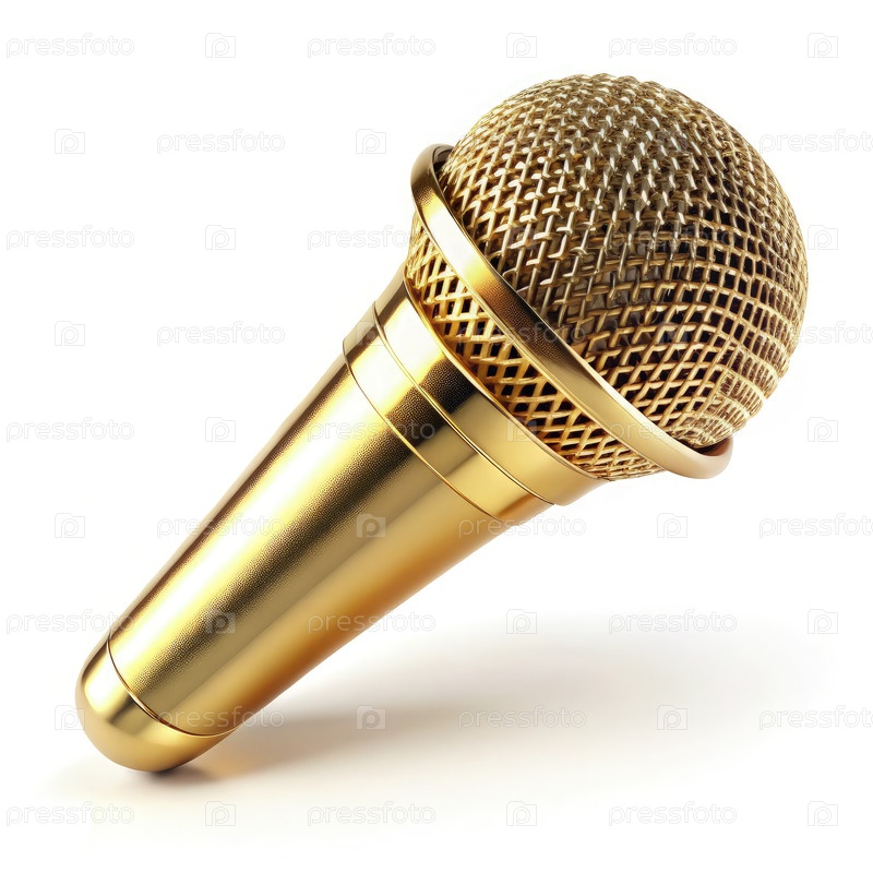 Золотой микрофон, установленный на чистом белом фоне для творческих проектов