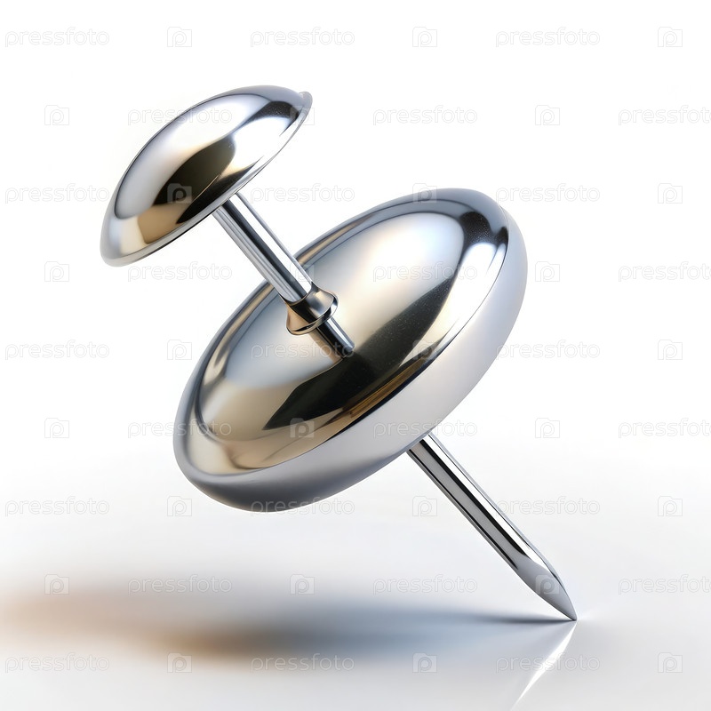 Глянцевая серебряная булавка плавает в воздухе на чистом белом фоне. генеративный ИИ