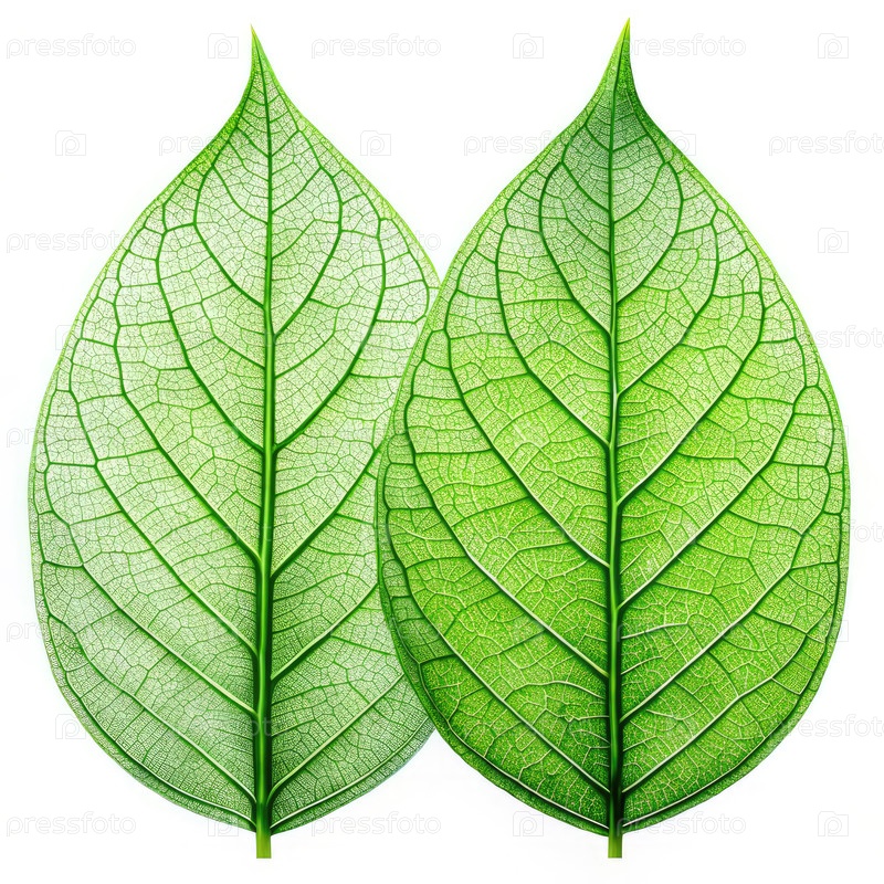 Два пересекающихся зеленых листа, демонстрирующих сложные текстуры и детали