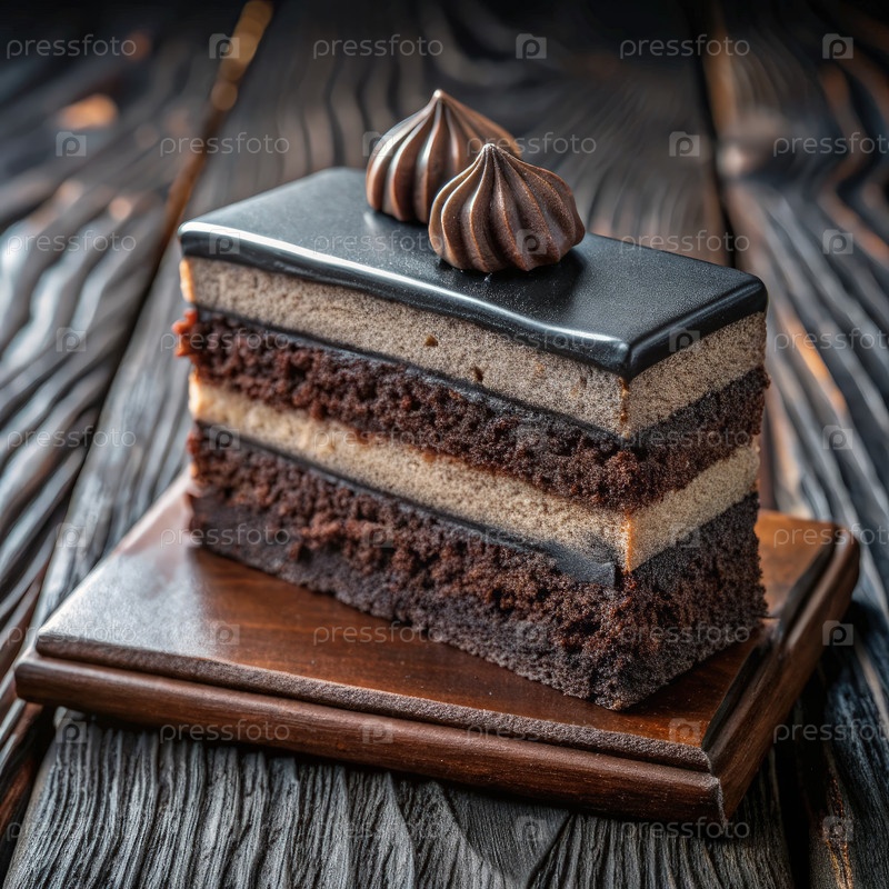 Вкусный слоистый шоколадный торт, подаваемый на деревянной доске в уютной обстановке