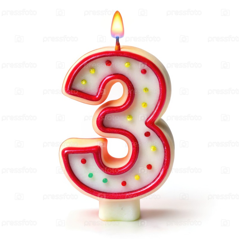 Яркая рождественская свеча номер три стоит прямо на простой белой поверхности