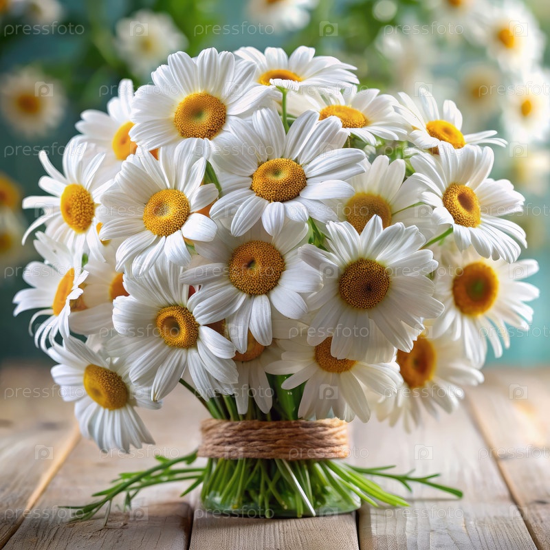 Красивый букет белых ромашек, изящно расположенный в стеклянной вазе