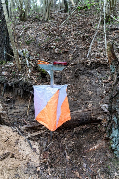 Ориентировочный пункт управления с оранжевым и белым флагом