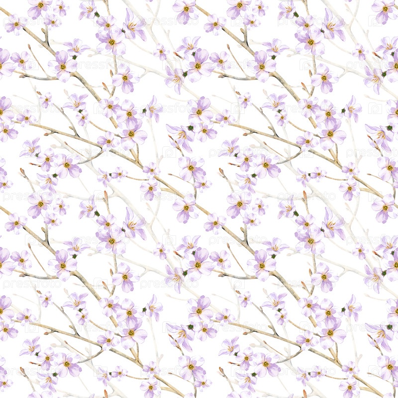 Бесшовный акварельный рисунок с красивыми весенними вишневыми цветами.Ручно нарисованное изображение выполнено в виде светло-розовых цветов на грациозных ветвях деревьев.Это романтическая цветовая иллюстрация на изолированном фоне.Этот рисунок идеально по