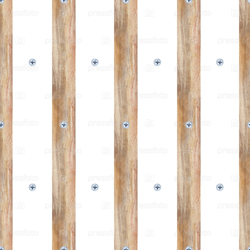 Минималистский и рустичный бесшовный шаблон, написанный вручную акварелью, с вертикальными светло-коричневыми деревянными досками и реалистичными стальными витками с перекрёстным приводом на изолированном фоне