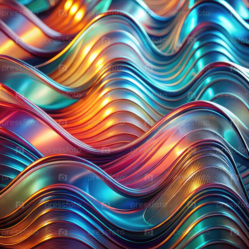 Красочные волнистые стеклянные формы создают завораживающий фон со светящимися отражениями
