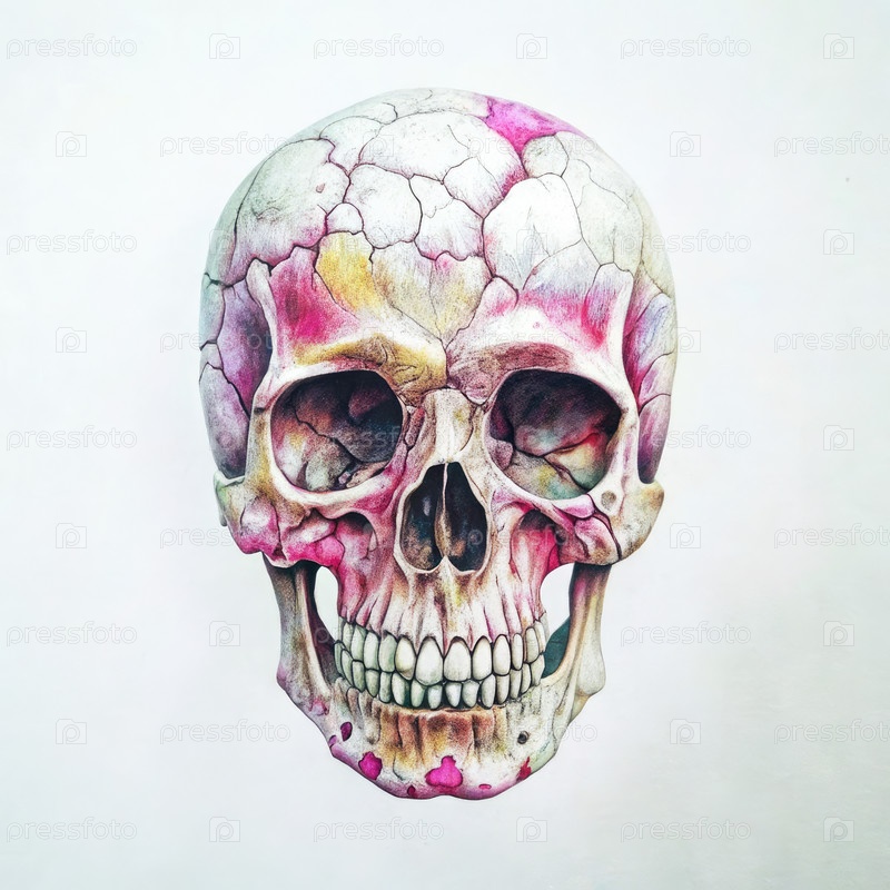 Череп со сломанными чертами и красочными выделениями на простом фоне. генеративный ИИ