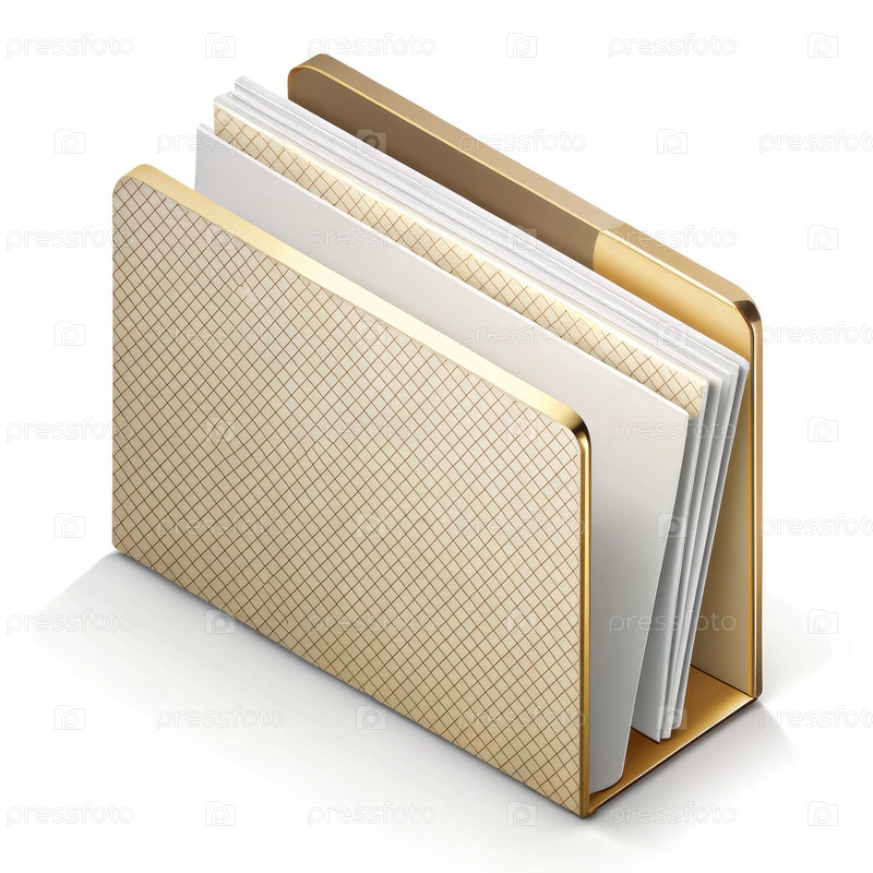 Элегантная золото-белая папка с нейтральными тонами, отображаемая на чистой поверхности