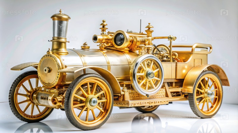 Необычный старинный автомобиль с паровым двигателем в современном масштабе, демонстрирующий уникальные элементы дизайна
