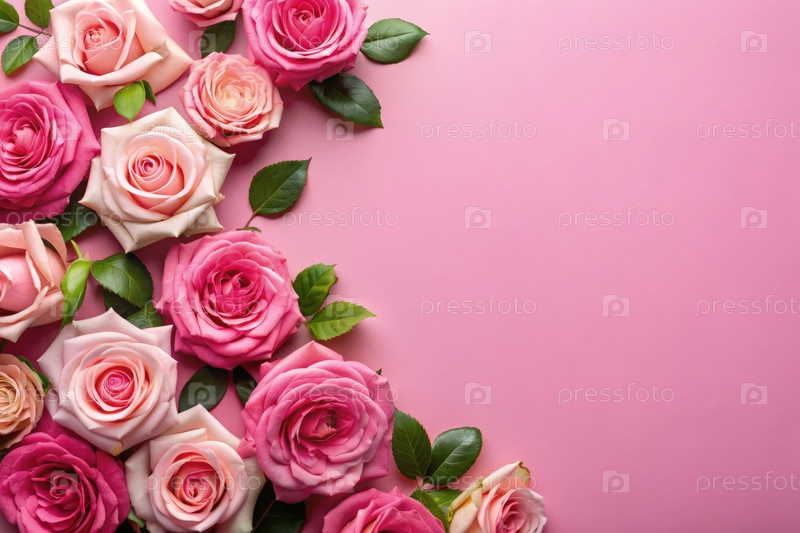 Устройство нежных роз в мягких оттенках на розовом фоне