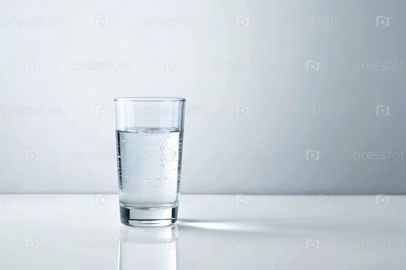 Прозрачный стакан холодной воды, отображаемый на белом фоне при ярком освещении